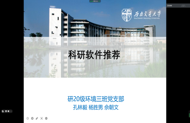 2021年8月25日晚,研20级环境三班通过腾讯会议线上开展了“我为师生办实事”的专项活动。本次活动,孔林毅、杨胜男、佘朝文三位同志从研究生最关心关注的问题出发,为加强研究生学术科研训练,提高研究生科研能力和学术论文撰写水平,举办了科研软件分享活动。