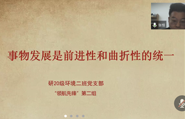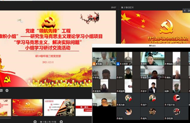为持续推动党史学习教育向纵深发展,引导支部党员做到学史明理、学史增信、学史崇德、学史力行,从党的百年伟大奋斗历程中汲取智慧和力量。bevictor伟德官网研20级环境二班党支部于2021年12月11日在线上开展了党建“领航先锋”活动之——“旗帜小组”学习成果研讨交流活动,分享近期阅读马克思主义原著等书籍的学习心得。此次活动由党支部书记杨鑫主持,研20级环境二班党支部全体成员参与。