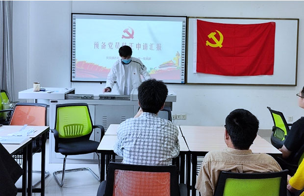 首先,两位预备党员汇报了在预备期间的思想学习、科研活动、志愿活动、等相关情况。两位同志均表示,预备期间在思想上积极向党组织靠拢,一直以一名党员的标准严格要求自己,认真履行党员的义务;同时完成了支部指派的各项工作并组织带领积极分子进行了相关主题的学习交流。还在主题党日活动方面作了一定的思考和探索,为支部做出了一定的贡献,自身也得到了一定的锻炼。