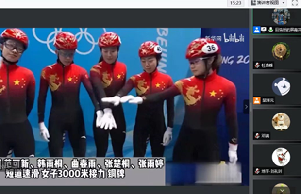随后田浩然同志重点讲解了东奥中的中国精神,首先是战胜自我,超越自我的拼搏奋斗精神。习近平总书记说过:在奥运会这样高水平的竞争场合,争第一、拿金牌奖牌很不容易,拿到金牌奖牌的,值得尊敬和表扬。同时,只要勇于战胜自我、超越自我,即使没有拿到金牌奖牌,同样值得尊敬和表扬。总书记关于奥林匹克精神的论述深刻而明确,对于运动健儿们,无论胜负成败,只要是朝着“更快、更高、更强—更团结”的目标竭尽全力地挑战和突破自我,就是对拼搏奋斗精神的最美诠释。其次是世界大同,天下一家的团结友爱精神,在此次冬奥会上,来华的国际友人们切实感受到了中国人民热情友好的待客之道,中国人民以实际行动向外国友人展示了“世界大同,天下一家”的团结友爱精神,也因此收获了与各国朋友的“神仙友谊”。由此,2022年北京冬奥会不仅是一场美妙的体育盛会,更折射出了中国人民为推动构建人类命运共同体的价值追求。