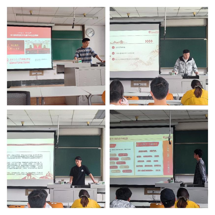 活动最后阶段的学习成果交流会,于2022年5月27日在J4221教室开展,参加此次活动的有研21级地质党支部全体成员。会议开始前由各位小组长统计各组的学习情况进行汇总,并总共挑选出四位优秀党员和积极分子学习代表进行学习成果交流,四位代表分别为:卢柱峰、范茂基、沈长伟、辛林根同志。这四位代表在会议上激情澎湃,立足于老员工视角,结合自身经历,用简短且深刻的语言讲述了自己对于十九届六中全会精神的所思所想所悟。随后由张宏洋同志对此次学习成果做适当点评简要总结,希望通过党员带团员的学习方式,能够引领支部全体成员及积极分子们共同提升理论知识水平,提高党性修为,锤炼党性修养,共同树立支部内的良好学习氛围与交流互动形式,以更加饱满的精神状态迎接二十大的胜利召开。