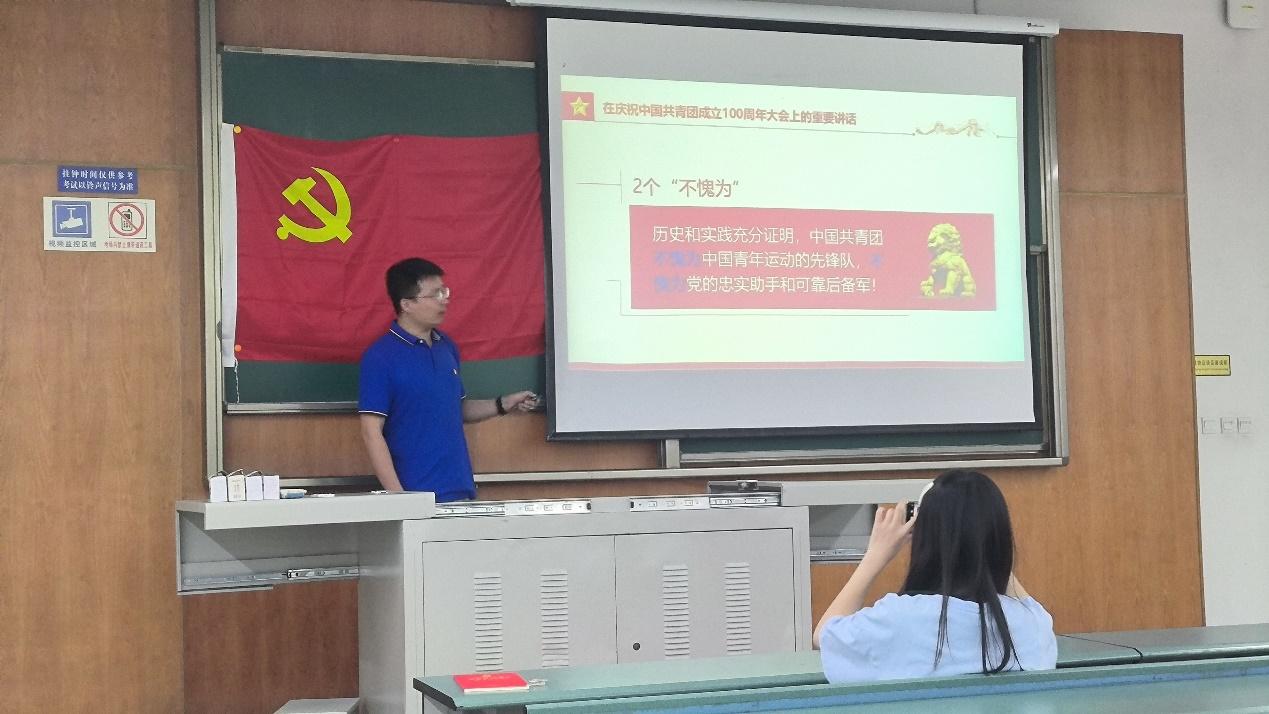 为深入学习贯彻习近平总书记在庆祝中国共产主义青年团成立100周年大会上的重要讲话精神,引领支部全体党员同志的学习热潮,于2022年6月15日星期三下午16:00,研21级地质党支部联合本科地质资勘党支部于X4156教室共同开展学习“习近平总书记在庆祝中国共产主义青年团成立100周年大会上的重要讲话精神”主题党日活动,本次活动由党支部书记刘杰同志和黄丽敏同志共同主持,并邀请经理助理丁明涛教授为我们主讲此次主题党课,我支部全体党员暨本科地质资勘支部成员悉数参加。