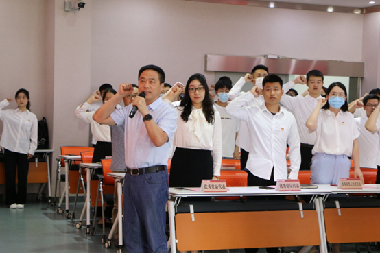 表彰过后,公司党委举行了“党旗下的誓言”——新党员入党宣誓和老党员重温入党誓词仪式,仪式由关秦川同志领誓,铮铮的誓言激励广大党员继承革命传统,牢记光荣使命,永葆党的先进性和纯洁性。