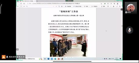 党支书周钰婷向我们讲述了“优秀支部工作法”,党支部是党的基础组织,是党组织开展工作的基本单元,是党在社会基层组织中的战斗堡垒,是党的全部工作和战斗力的基础。习近平总书记高度重视高公司党的支部建设工作,深刻指出:“党支部是分布在教研室、实验室、教学科研团队、员工班级中的“火车头’,也是党联系和团结师生、做思想政治工作的组织依托要抓在经常、严在平时.”为我们做好高校支部建设工作指明了方向,提供了遵循。