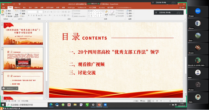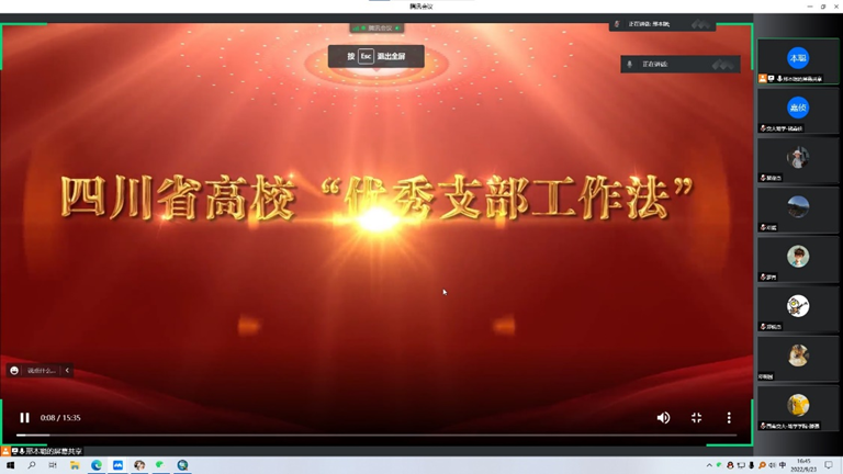 本次专题活动由邢本聪同志主讲。活动主要内容包括20个四川省高校“优秀支部工作法”案例领学、观看推广视频、讨论交流三个方面。