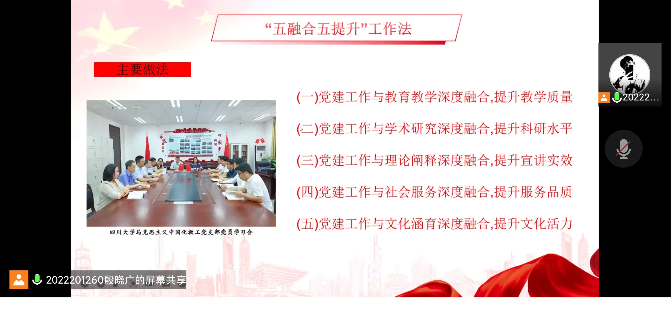 会议最后,鼓励大家线下继续深入的去学习《四川省高校“优秀支部工作法”》,鼓舞有兴趣的党员同志撰写学习心得体会,为支部组织建设舔砖加瓦。