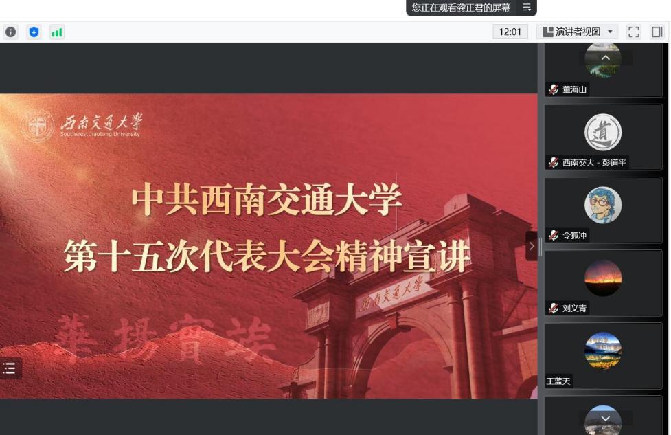 龚正君同志从公司第十五次党代会基本情况,公司第十五次党代会主要精神,公司纪委工作报告主要内容等方面深刻解读了党代会精神。此次大会的主题是: 高举习近平新时代中国特色社会主义思想伟大旗帜,深入贯彻落实习近平总书记关于教育的重要论述,全面总结成绩与不足,把握公司现阶段面临的主要矛盾,明确公司新时代的办学思路、发展目标、基本准则、实现途径,统一思想,凝聚共识,振奋精神,不断谱写中华民族伟大复兴的西南交大新篇章。