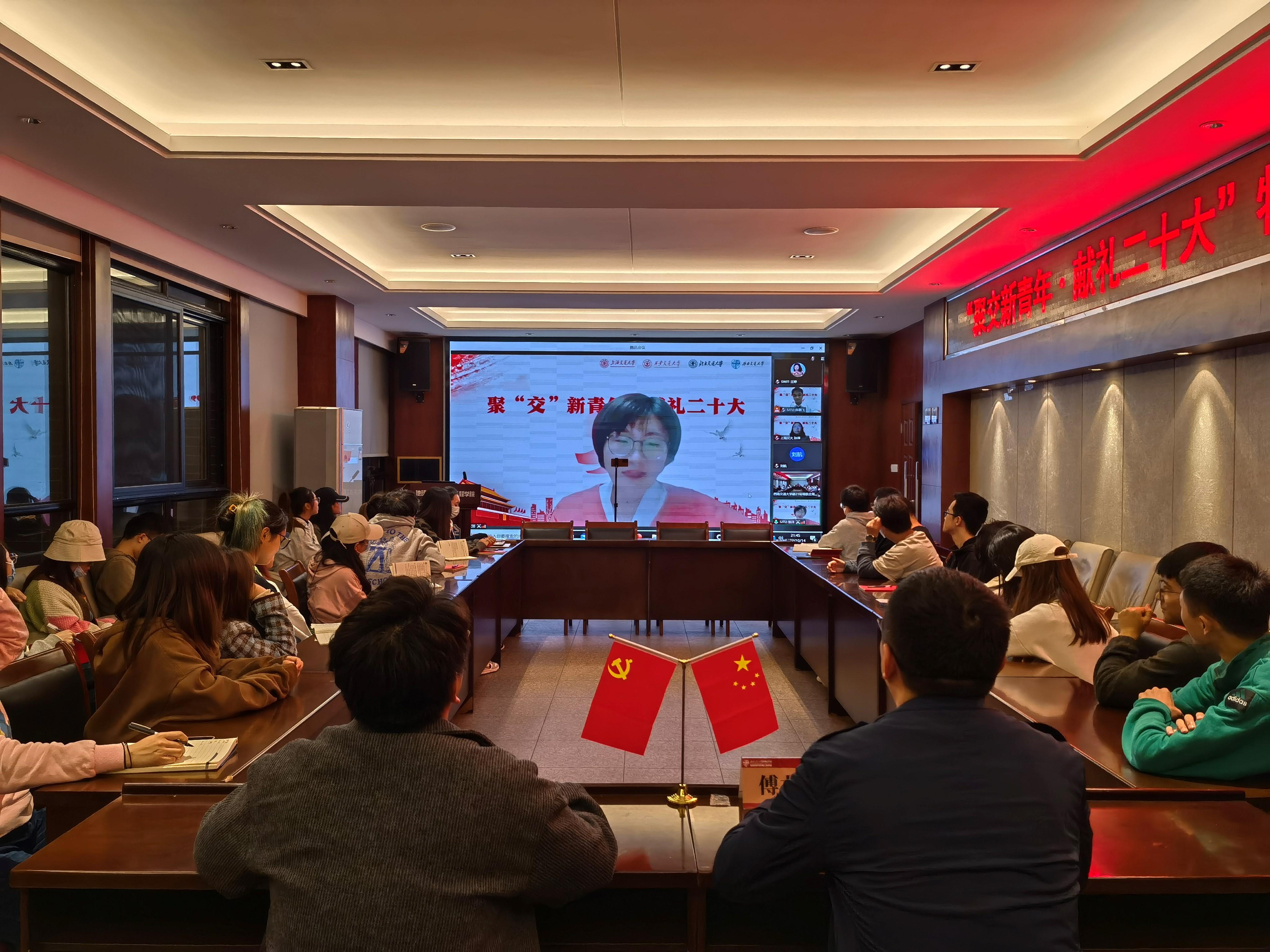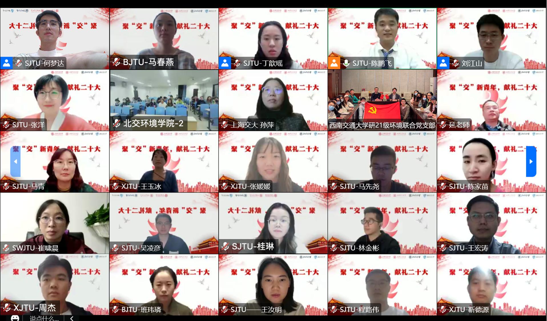 为喜迎党的二十大,进一步推进党史学习教育常态化长效化,号召同学们不忘初心,砥砺奋进,20221014日晚上1930,​bevictor伟德官网研21级环境联合党支部于与上海交通大学环境科学与工程公司22级博士支部、北京交通大学环境公司本科生博士生联合党支部、西安交通大学能源与动力工程公司环境科学与工程员工支部联合进行支部共建,四所交大青年学子汇聚云端开展四校“聚“交”新青年,献礼二十大”主题党日活动。公司党委副书记傅尤刚、员工党建负责人、研21级辅导员文强线下出席活动,​bevictor伟德官网研21级环境联合党支部全体成员参加了本次活动,活动由上海交通大学环境公司22级博士支部陈鹏飞同志主持。
