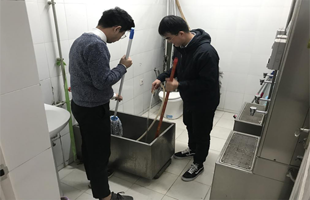 在党支部书记杨世恩的带领下,大家对鸿哲斋四栋的开水房、洗衣房、电梯、过道进行了清扫,为同学们创建出了一个更加整洁、舒适的宿舍环境。在大家的协力合作下,终于将楼道卫生清理干净,宿管阿姨也很满意地夸赞了党支部成员。