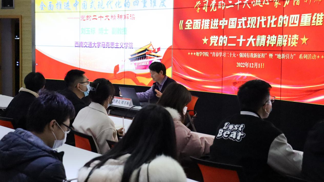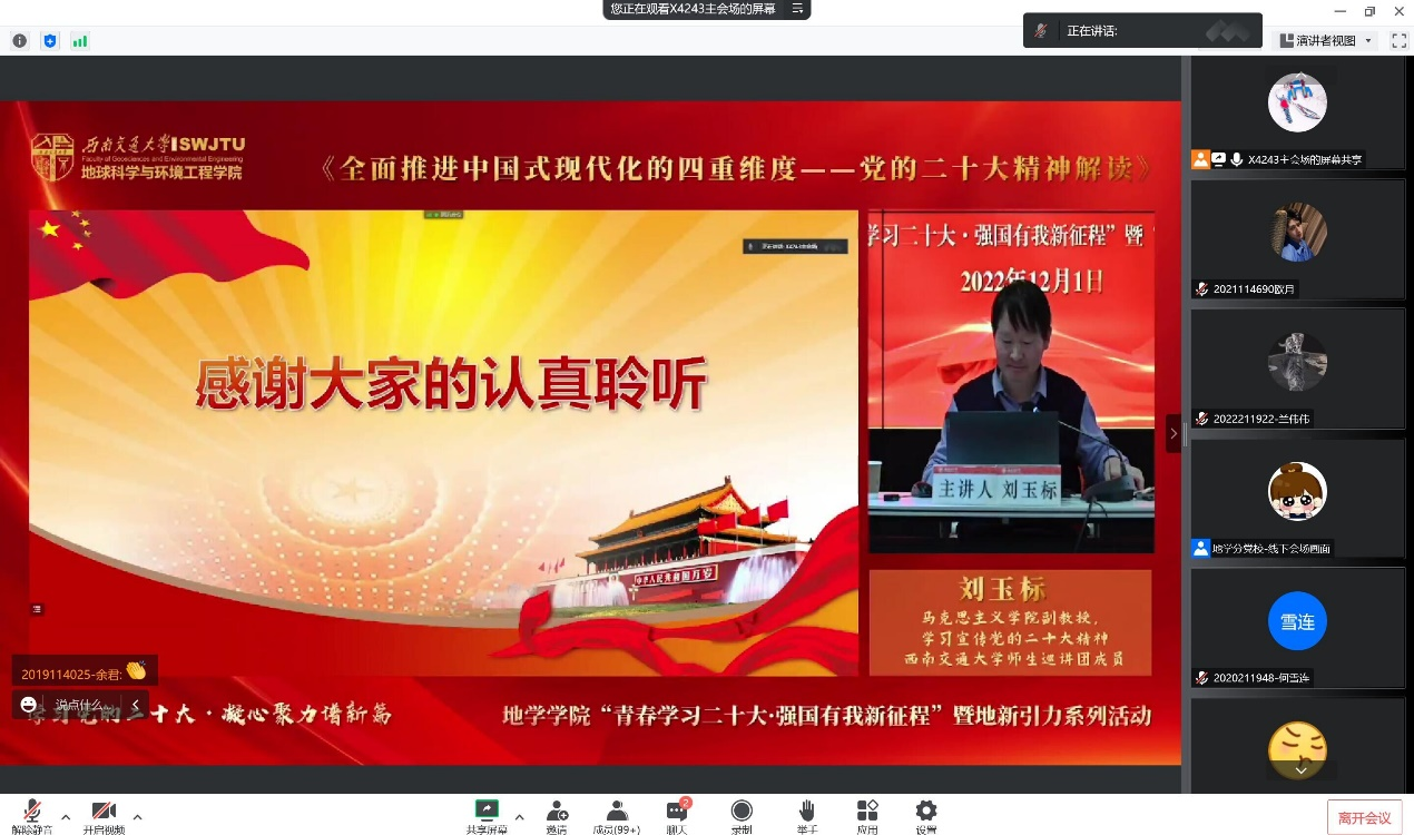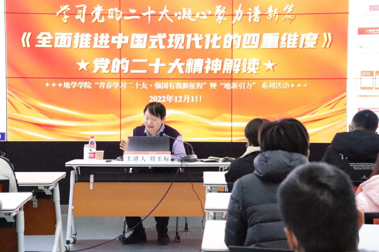 为深入学习贯彻党的二十大精神,号召全体党员用党的二十大精神武装头脑。12月1日下午16:00点整,bevictor伟德官网在X4243会议室以线下、线上,集中和个人自行收看相结合的方式开展“党的二十大精神专题宣讲”活动。本次讲座由bevictor伟德官网马克思主义公司副教授、bevictor伟德官网党的二十大精神师生巡讲团成员刘玉标主讲,bevictor伟德官网专职组织员、党务秘书李晓宇主持,院内员工党员、发展对象、入党积极分子、青年讲师团成员代表共计800余人参加。