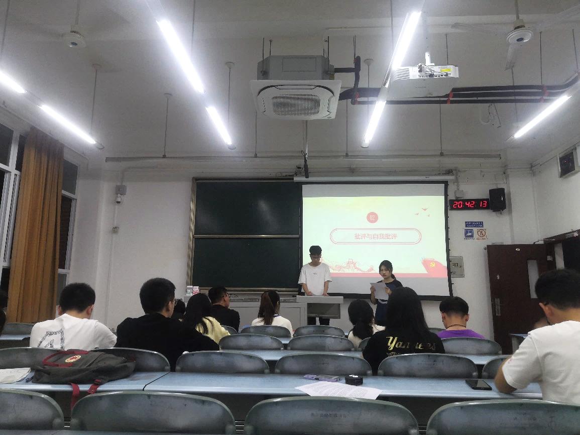 大会第二项,支部内开展民主评议党员。支部书记黄泳桦同志代表支部委员会汇报了去年工作开展情况,邓嘉琳、王程、黄泳桦三名正式党员对照新时代合格党员标准、入党誓词,结合实际情况开展批评与自我批评,其他党员在民主测评表上进行民主评议工作。