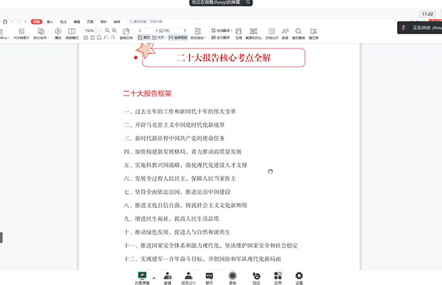(一) 温习党的二十大知识。党支部书记周钰婷同志共总结十六条关于二十大知识相关的重要知识点,并为大家一一详细讲述,大家受益良多。