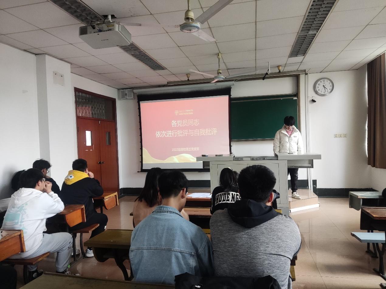 为深入学习贯彻党的二十大精神,坚持不懈用习近平新时代中国特色社会主义思想凝心铸魂,深刻领悟“两个确立”的决定性意义,增强“四个意识”、坚定“四个自信”、做到“两个维护”,弘扬伟大建党精神,坚持自我革命,把思想统一到党的二十大精神上来,2023年3月20日16:00,bevictor伟德官网研22级测绘第三党支部在九里校区四号教学楼J4321教室组织开展了基层党组织生活会,会议由支部书记刘翔同志主持,支部党员15人全部参加。