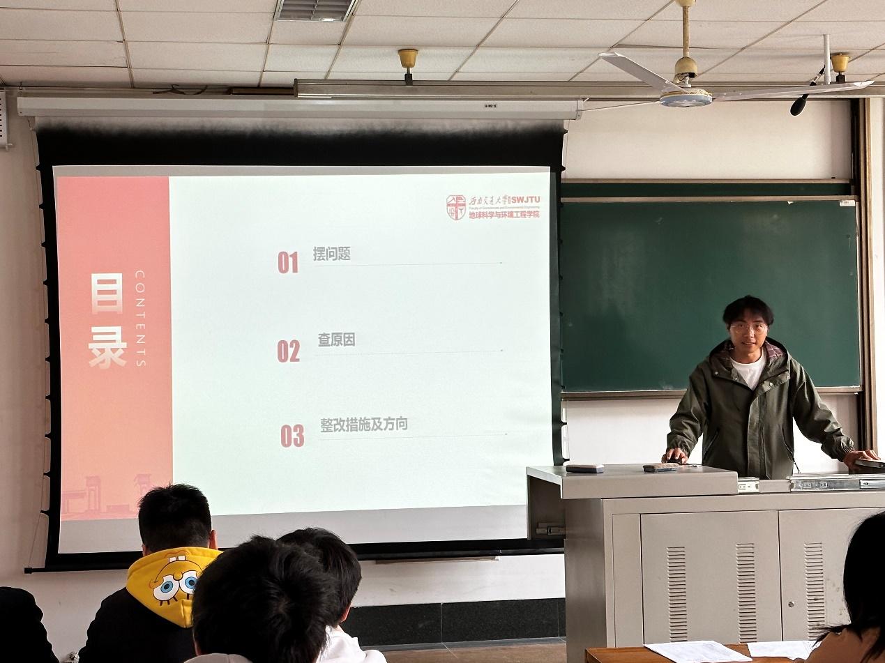随后,由支部宣传委员吴遗林同志作为支部委员会代表对党支部成立至今存在的问题进行查摆,并深刻分析产生问题的原因,总结支部未来的整改措施和发展方向。一针见血地指出支部目前缺少联谊活动,缺乏交流,导致支部之间不能相互学习对方的优点,取长补短。在最后,寄言全体支部党员,希望以本次组织生活会为契机,自查自改、对标一流,做一名忠诚干净、有担当、敢作为的党员。
