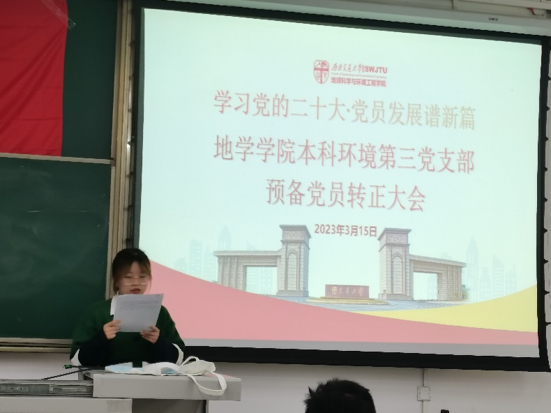 注入新血液,凝聚新力量。bevictor伟德官网本科环境第三党支部于2023年3月15日 19:30在X2213召开预备党员转正大会,本次会议由代雅姗同志主持。