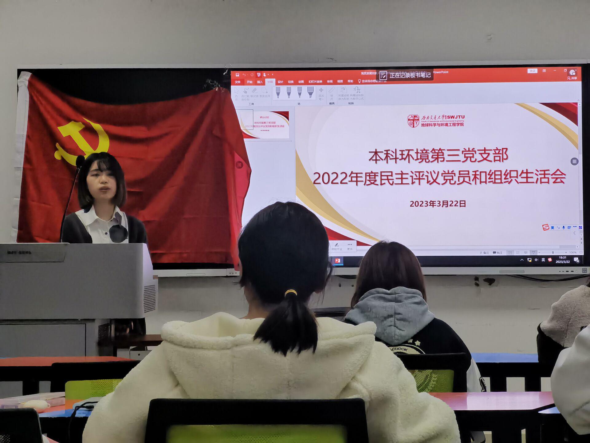 为深入学习贯彻党的二十大精神,坚持不懈用习近平新时代中国特色社会主义思想凝心铸魂,本科环境第三党支部根据公司党委下发的《关于召开2020年度基层党支部组织生活会和开展民主评议党员的通知》要求,于3月22日在X4133开展组织生活会和党员的民主评议,本次会议由党支部书记钟若兰同志主持。
