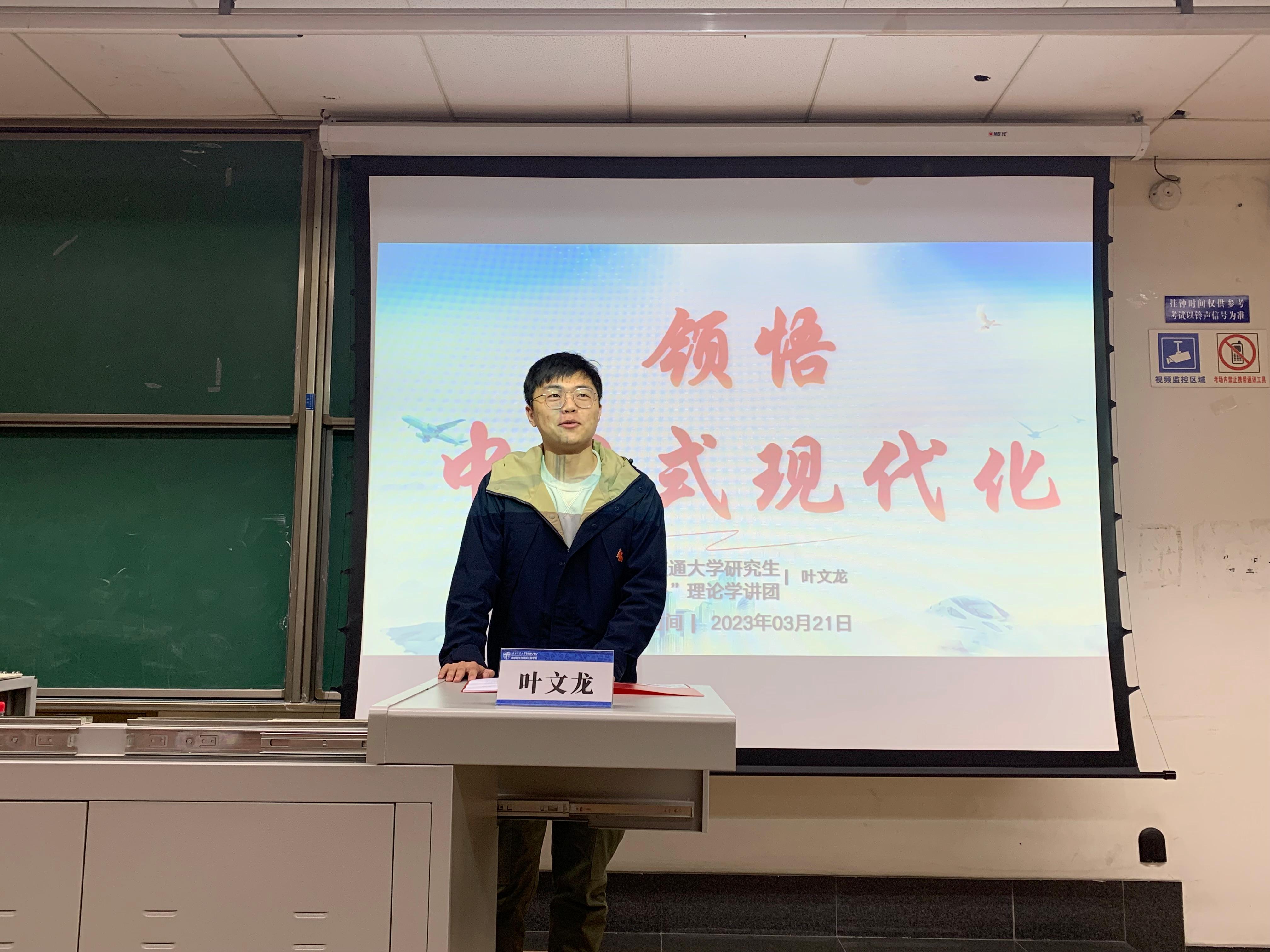 接下来,土木工程公司2021级博士研究生叶文龙以《领悟中国式现代化》为题系统的介绍了中国式现代化的含义以及特征,对中国式现代化是世界机遇进行了解读。