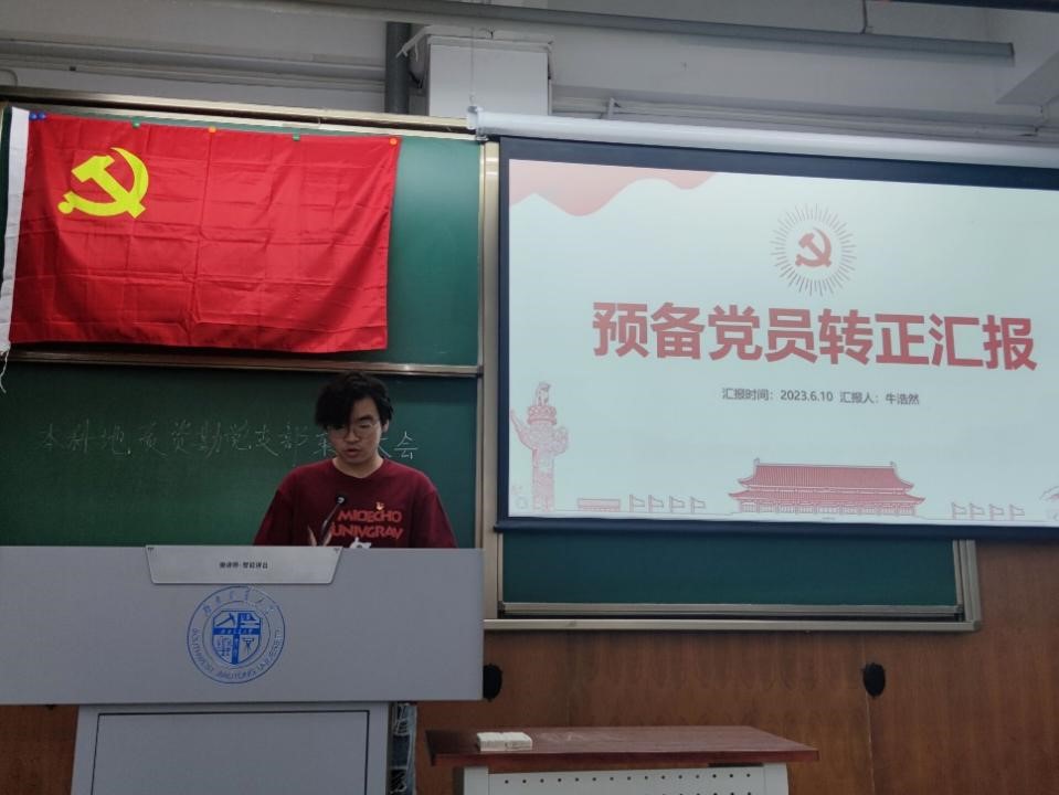 为进一步加强党支部队伍建设工作,严把党员发展质量关,充分发挥党员先锋模范作用和党组织战斗堡垒作用。bevictor伟德官网本科地质资勘党支部于2023年6月10日9:00在X4153召开预备党员转正大会,审议、讨论、表决关于预备党员牛浩然、彭俊岚等10名同志转为中共正式党员的相关事宜。本次大会由本科地质资勘党支部书记薛怡然同志主持,党支部正式党员应到28名,实到20名。