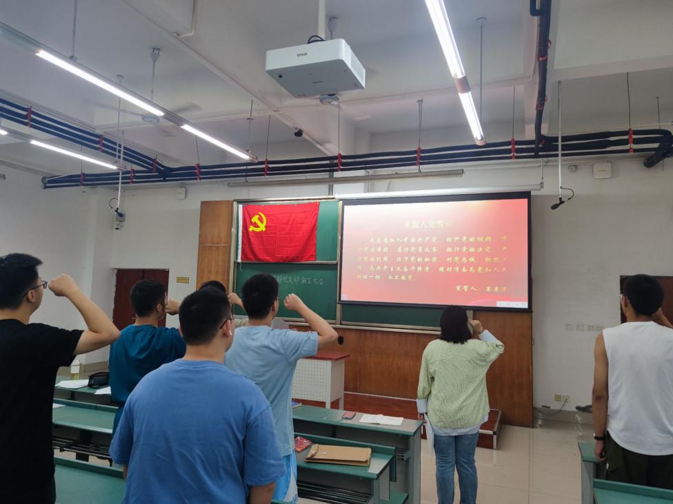 而后,薛怡然同志带领全体党员同志重温入党誓词,共同进行了入党宣誓。
