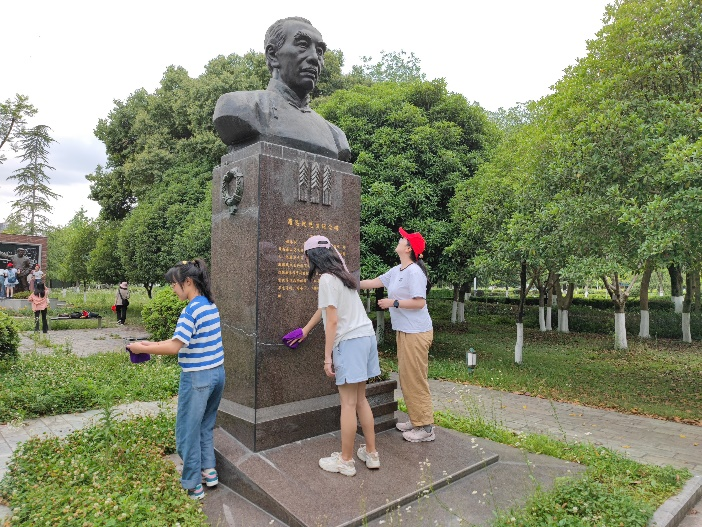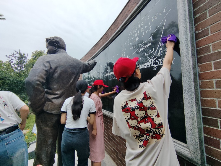 大约四十分钟后,雕塑清洗活动也接近结束,大家将抹布和拖把洗刷干净、放回原处。志愿活动结束后,全体党员同志在雕像前合影。作为党员,大家纷纷表示通过志愿服务提升了自己的思想认识,并将在以后的学习和生活中始终贯彻这份初心,铭记服务精神,充分发挥党员的先锋模范作用。