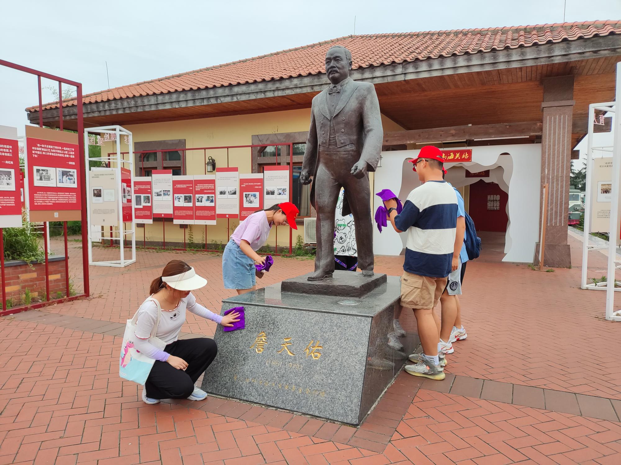首先,本科环境第三党支部全体党员和地学青协志愿者在机车博物馆前集合并进行任务分配。大家分为三组,在确保安全的前提下对机车博物馆内的詹天佑先生雕像以及南门右侧草坪上的黄万里先生雕像、罗忠忱先生雕像进行耐心仔细地擦拭。