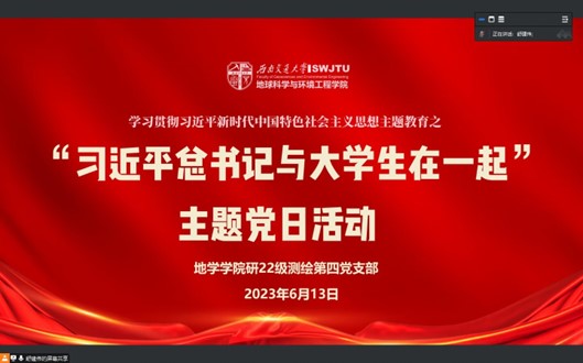 为深入学习贯彻习近平新时代中国特色社会主义思想和党的二十大精神,深刻领会习近平总书记关于建设教育强国的重要讲话精神,加强党员教育和思想政治工作,2023年6月13日19:30,研22级测绘第四党支部线上开展了“习近平总书记与老员工在一起”主题党日活动。本次活动由党支部书记舒建伟同志主持,支部党员参加。