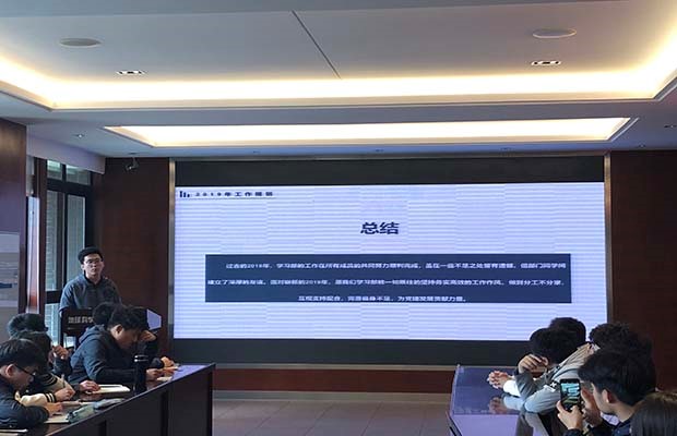 其后,各部门对过去一年的工作进行总结并对接下一年的工作安排进行讲述。在工作总结方面,各部门指出过去工作中出现的问题并提出相应的解决方案。就培养干事们的工作热情及相关能力欠缺问题,学习部提出应加强对部门成员技能培训,提高部员们办事的准确度和效率;就党建事务中心各部门间联系不够频繁关系不够密切问题,活动部推出打卡计划、读书分享会以及观看电影等活动,加强与其他各部门间的工作娱乐联系,传承发扬党建事务中心团结协作精神。在工作安排方面,除了对过去工作进行相应的调整外还提出一些创新的想法。宣传部联合党建事务中心各部门推出微信公众号“知行学堂”专栏,针对公司党员、积极分子,以“两会”、“党员应知应会”等为内容,进行相关考核。