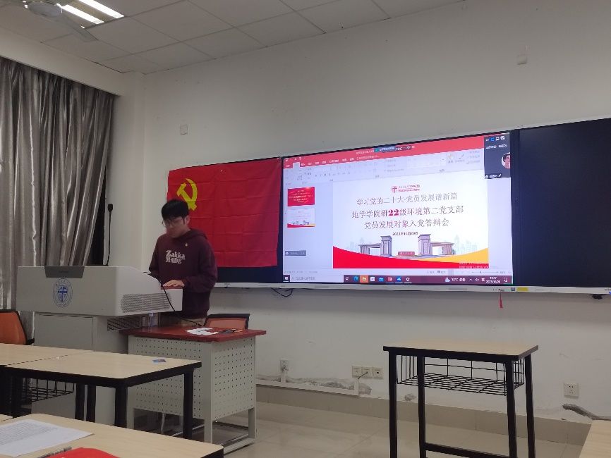 为积极响应党的号召,不断健全发展对象培养与考核机制,确保预备党员质量,2023年10月20日19:30,bevictor伟德官网研22级环境第二党支部于X4127开展发展对象答辩大会。此次答辩由党支部书记邱建宏同志主持,共计9名正式党员,1名入党积极分子参加。