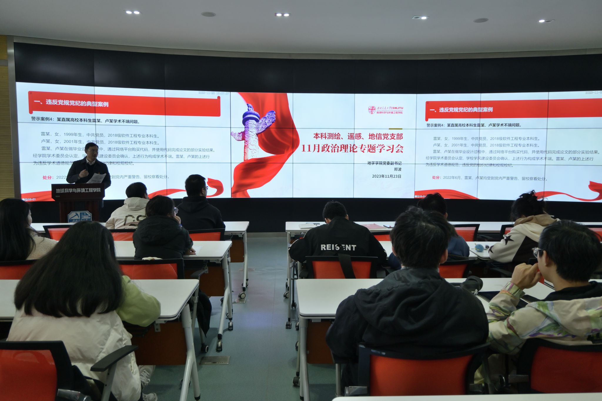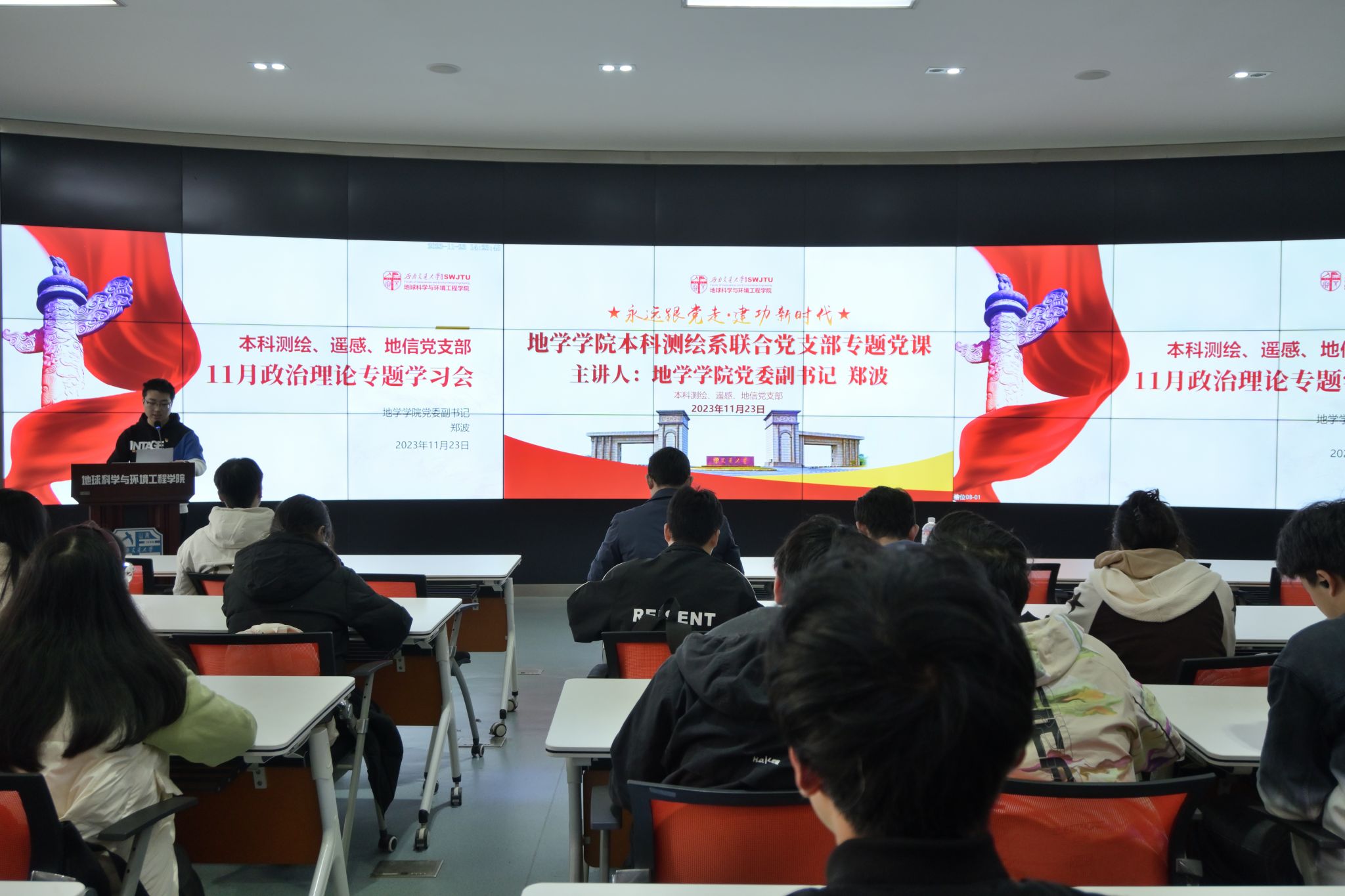 为深入学习贯彻习近平新时代中国特色社会主义思想和党的二十大精神、加强党员教育管理工作,bevictor伟德官网bevictor伟德官网本科测绘、地信、遥感党支部于2023年11月23日14:00在犀浦校区X4243联合开展了“永远跟党走·建功新时代”主题党日活动,活动分为十一月政治理论学习和专题党课,政治理论学习由本科测绘党支部书记任纪州同志领学,专题党课由公司党委副书记郑波主讲,本科测绘、地信、遥感党支部部分党员同志、2023-02期发展对象参与。