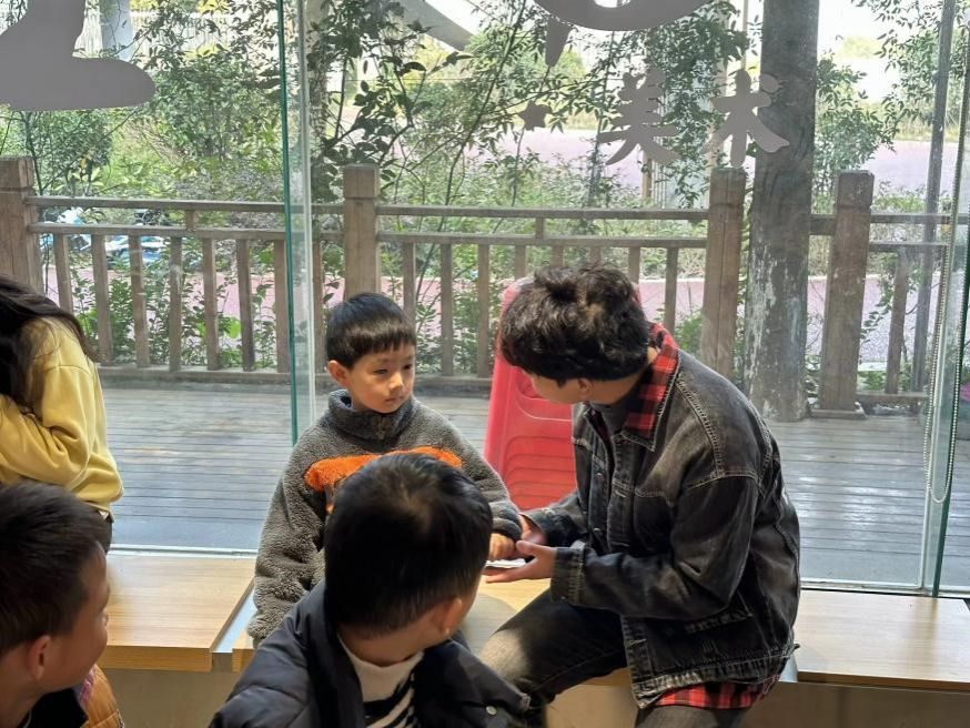 随后,活动现场的干事们与社区儿童进行了游戏互动。第一个游戏是数字炸弹:在数字1-100中随机选定炸弹数字,小朋友们轮流猜测数字,如果小朋友未猜到炸弹数字,则范围缩小,如果猜到炸弹数字,游戏结束,这个小朋友失败,给大家表演一个节目。随后第二个游戏:指定一个园,干事们选择的是水果园和动物园 每个小朋友轮流在3秒内说出与该园相关的事物,答错、卡顿或重复则为失败,给大家表演一个节目。在欢乐的氛围下,孩子们越来越积极地参与到活动中去并勇于表现自己,在游戏中增进情感,收获快乐的同时获取到知识。