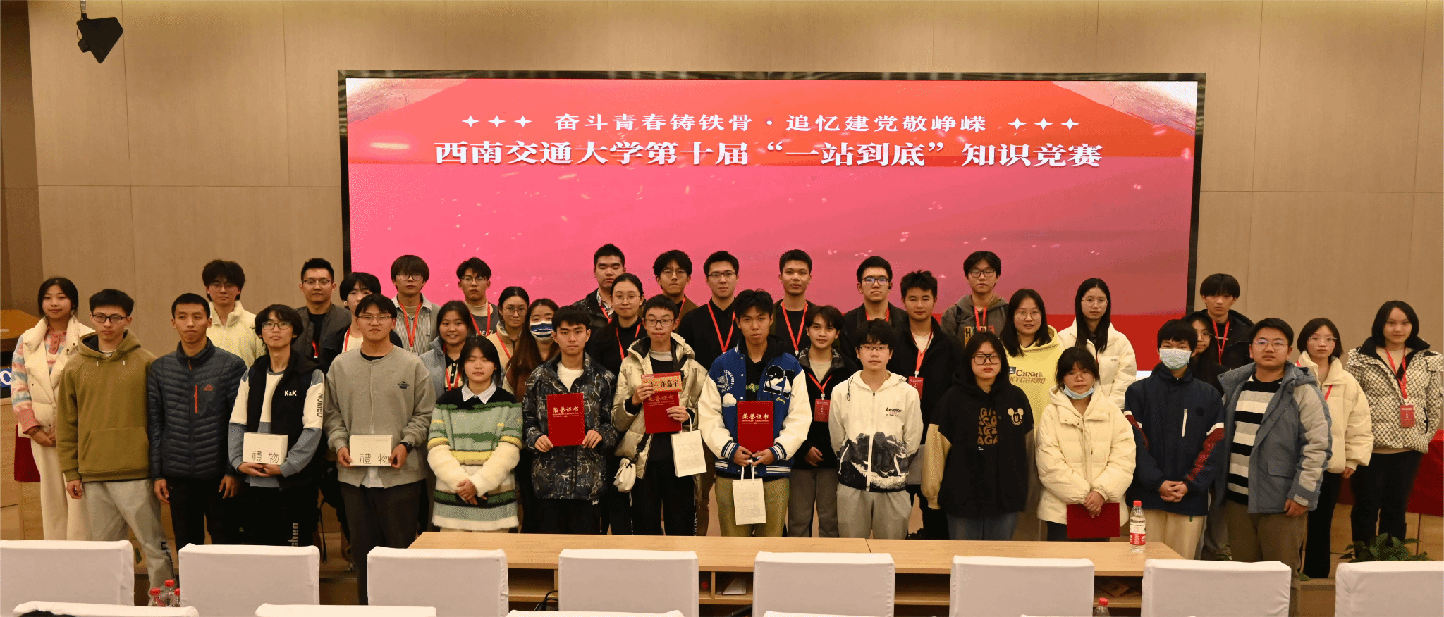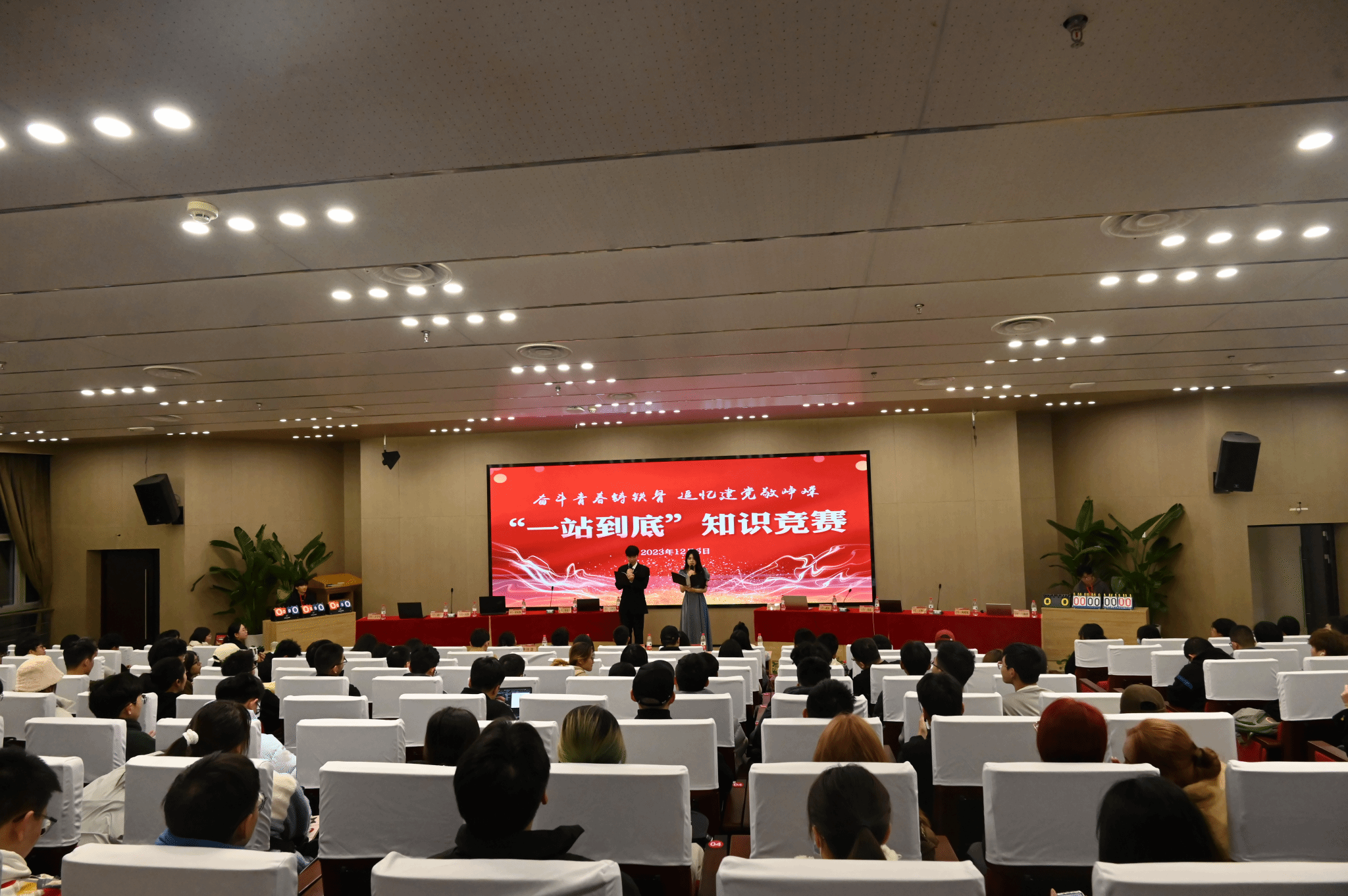 青年兴则国家兴,青年强则国家强,在党和国家的发展历程中,少不了广大青年的挺膺担当。2023年是全面贯彻落实党的二十大精神的开局之年,为把二十大报告中提出的目标任务落到实处,在新时代新征程上创造属于交大学子的新伟业,bevictor伟德官网特于12月6日晚在犀浦校区图书馆二号报告厅举办“奋斗青春铸铁骨·追忆建党敬峥嵘”——第十届“一站到底”知识竞赛,紧紧围绕“党政军民学,东西南北中,党是领导一切的”思想,从多个知识面考察个人综合素质,出题涵盖古典诗词、传统文化、国家地理、自然科学、健康医疗等等。经过主办师生的精心筹备与不懈努力,活动在热烈的掌声中开幕。