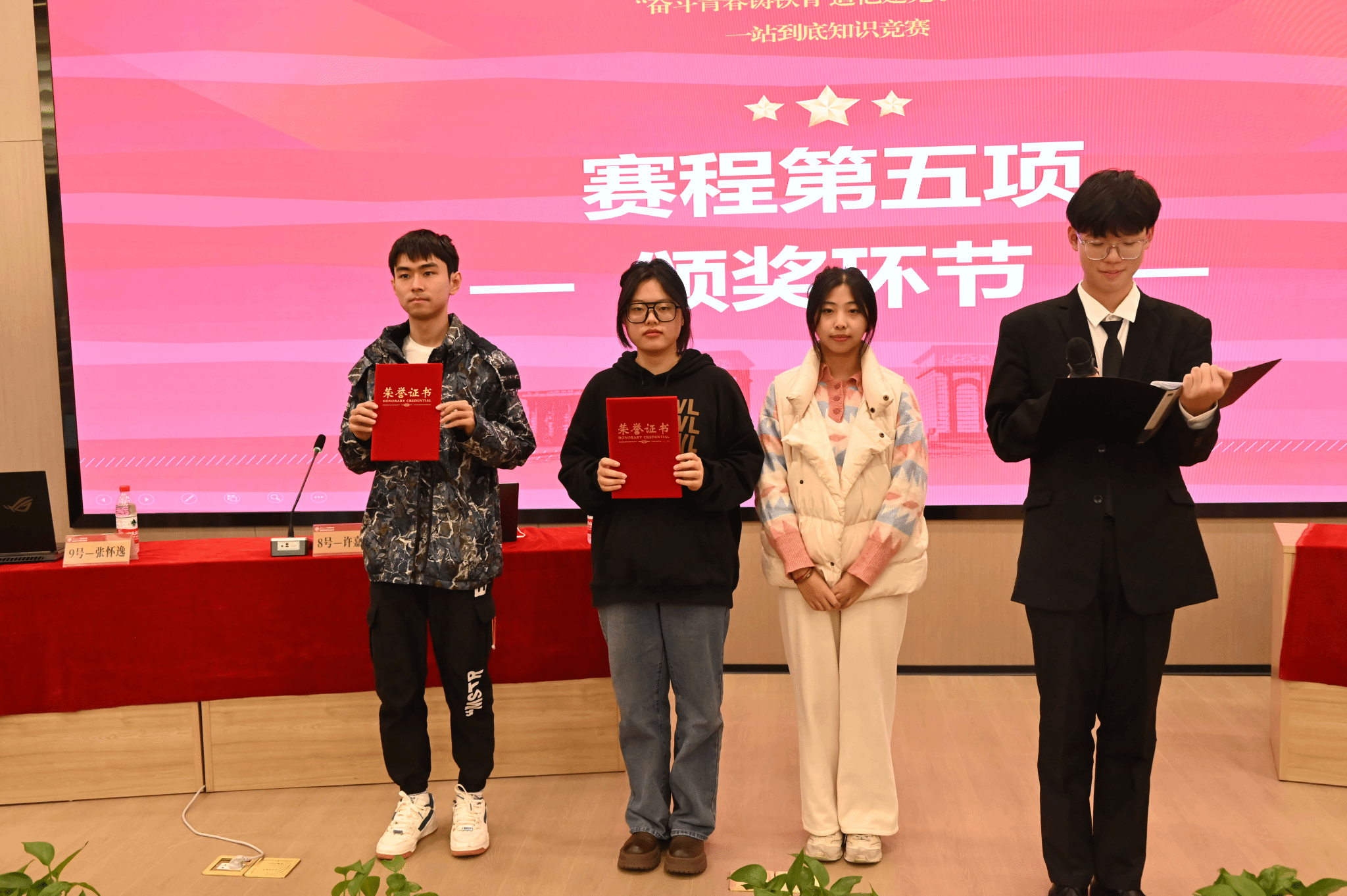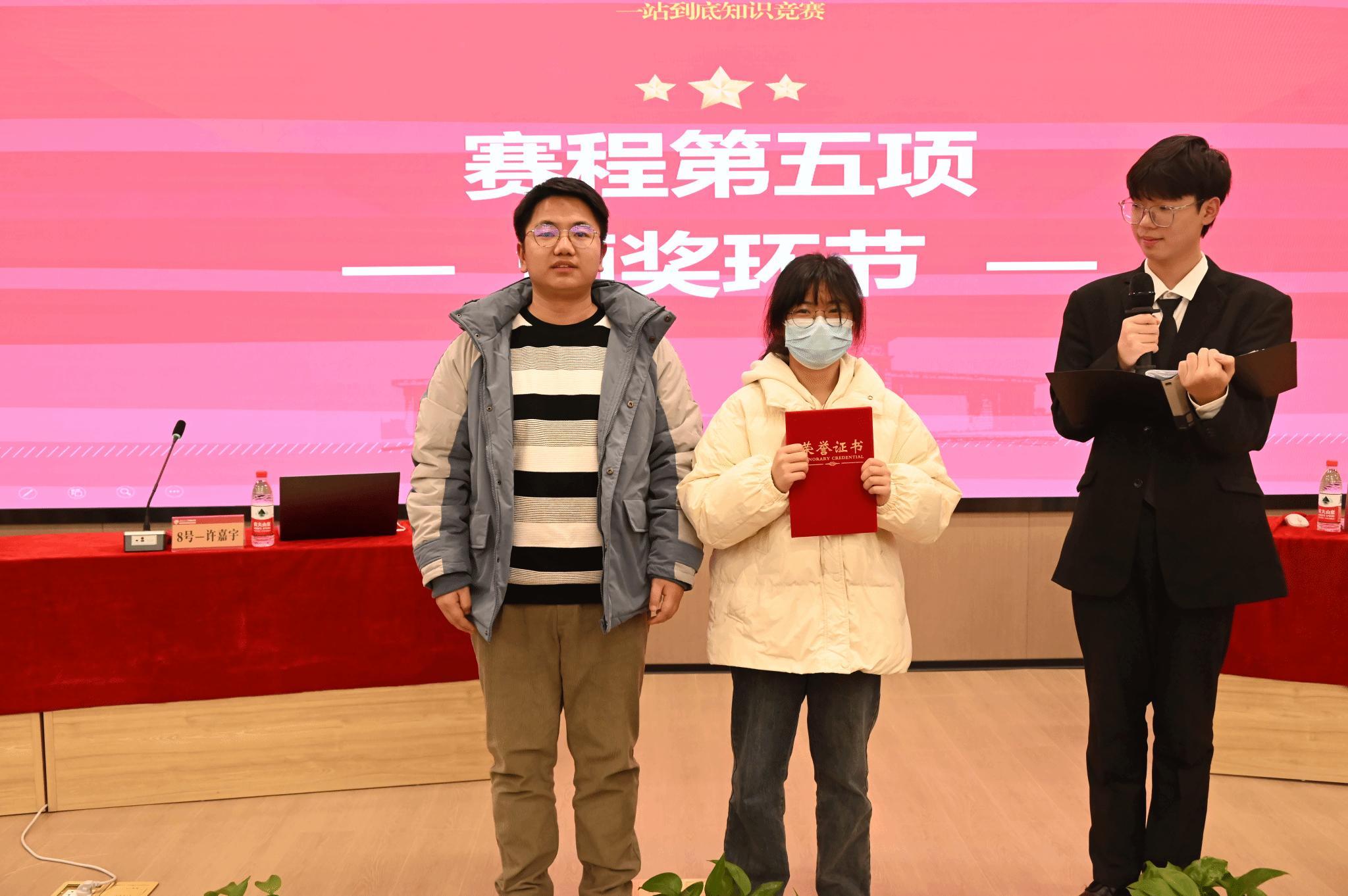 三轮比赛后,场上仅剩六位选手参与角逐,第四轮为车轮战赛制,又一场激烈比拼后,来自机械工程公司的马雨歌同学脱颖而出,荣获本次比赛的一等奖。在发表获奖感言时,马雨歌同学表示了对公司和同学朋友的感谢,并祝愿“一站到底”知识竞赛能够越办越好。