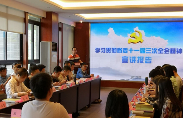 曲成举以“学习贯彻省委十一届三次全会精神”为题进行讲座。在介绍省委十一届三次全会基本情况后,曲成举带领在场党支部书记学习了会议的重大意义。并对会议的根本指针进行了讲解。