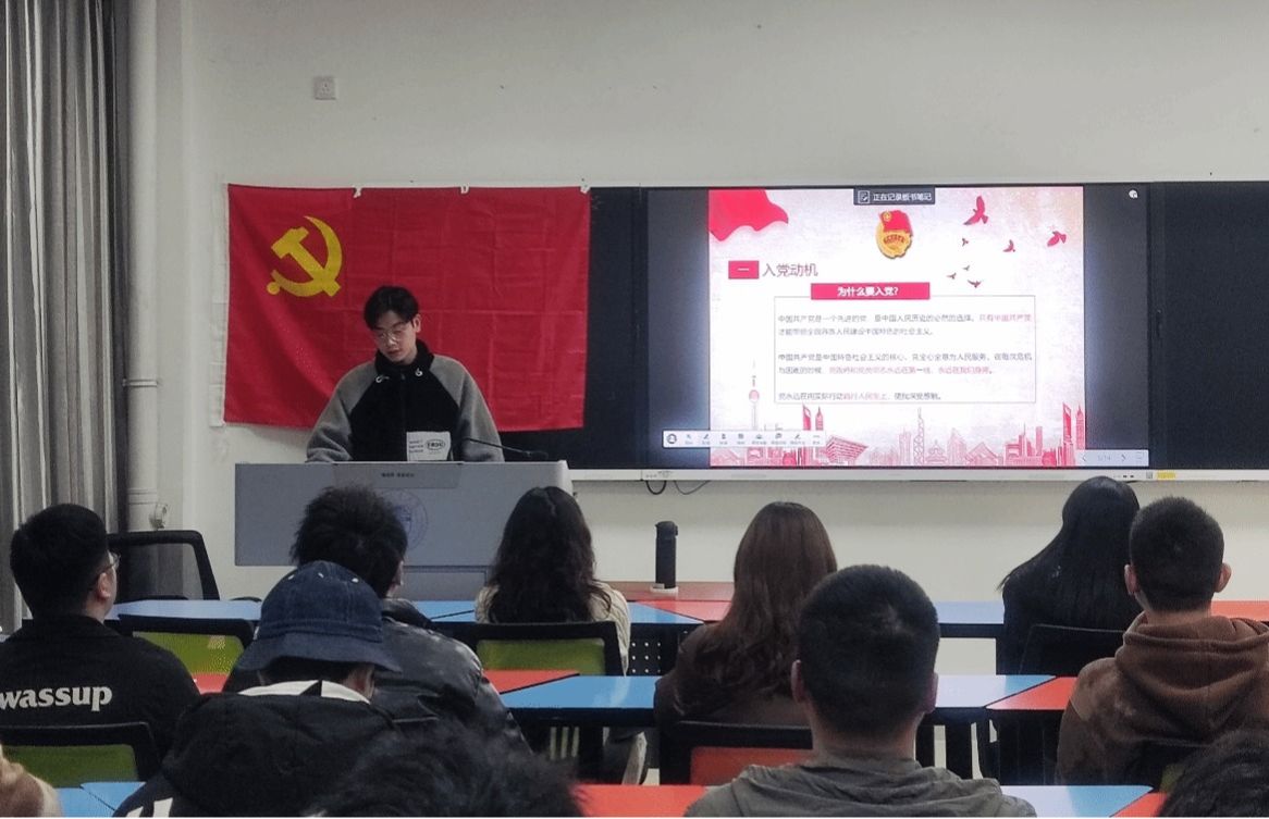 第二位答辩人黄涛同志分别从入党动机、入党积极分子培育期间的认识和体会、思想政治、作用发挥以及自身不足等五个方面进行汇报。黄涛同志认为入党代表着使命感,代表着理想信念,代表着责任和担当。因此,他在向党组织靠拢的过程中,始终保持积极向上的心态,在面对困难时永不退缩。