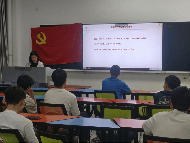 最后,宋盼盼同志认真领学了《中国共产党纪律处分条例》的核心内容和精神实质。她强调了党纪严明的重要性,指出党纪是党内法规的重要组成部分,对于维护党的团结和纯洁性具有至关重要的作用。张建国等同志就如何在实际工作中贯彻执行《中国共产党纪律处分条例》进行了深入讨论。他们表达了对条例精神的深刻理解,认为每个党员都应自觉遵守党纪,防止任何腐败现象的发生。同志们一致认为,加强党风廉政建设,严格党的纪律,是确保党和国家长治久安的关键,强调了全体党员应增强纪律意识,积极落实党纪要求,为推动党和国家事业发展做出积极贡献。