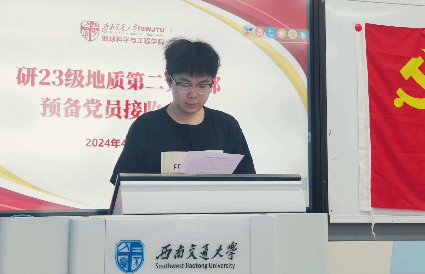 为切实做好2024年发展党员工作,提高党员发展质量,2024年4月25日,研23级地质第二党支部在J4205内举行预备党员接收大会。此次大会的主要议题是讨论关于接收朱茹洁同志为预备党员的问题。