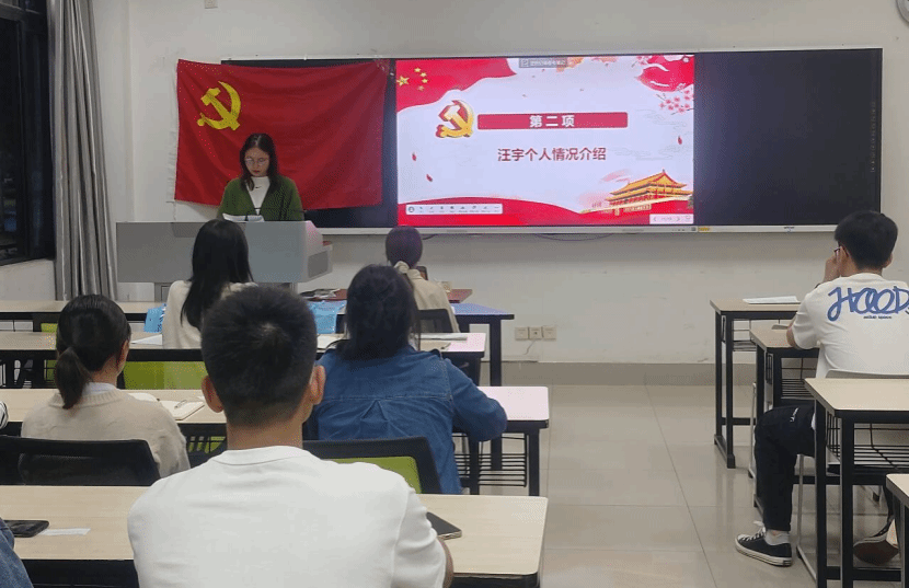 大会第三个环节,由支部组织委员汇报发展对象的审查情况。龚依婷同志表示,根据一段时间的考察培养,可以看出汪宇同志在思想政治上能够始终同党中央保持一致,认真贯彻执行党的路线,方针,政策,政治立场更加坚定;工作上扎实肯干、兢兢业业、任劳任怨;并通过同本人谈话,查阅有关档案材料,找有关单位和人员或函调了解,其本人,直系亲属及联系密切的主要社会关系是清楚的。现根据本人申请和一贯表现:在广泛征求党内外党员、群众意见的基础上,经过支部委员会充分酝酿和认真讨论,一致认为汪宇同志基本具备党员条件,决定提交支部党员大会讨论其能否被接受为预备党员的问题。大会第四个环节,现场全体党员同志进行讨论并发表意见。全体正式党员表示,汪宇同志在校期间表现良好,思想端正,积极向党组织靠拢,主动参与公司的志愿服务等。