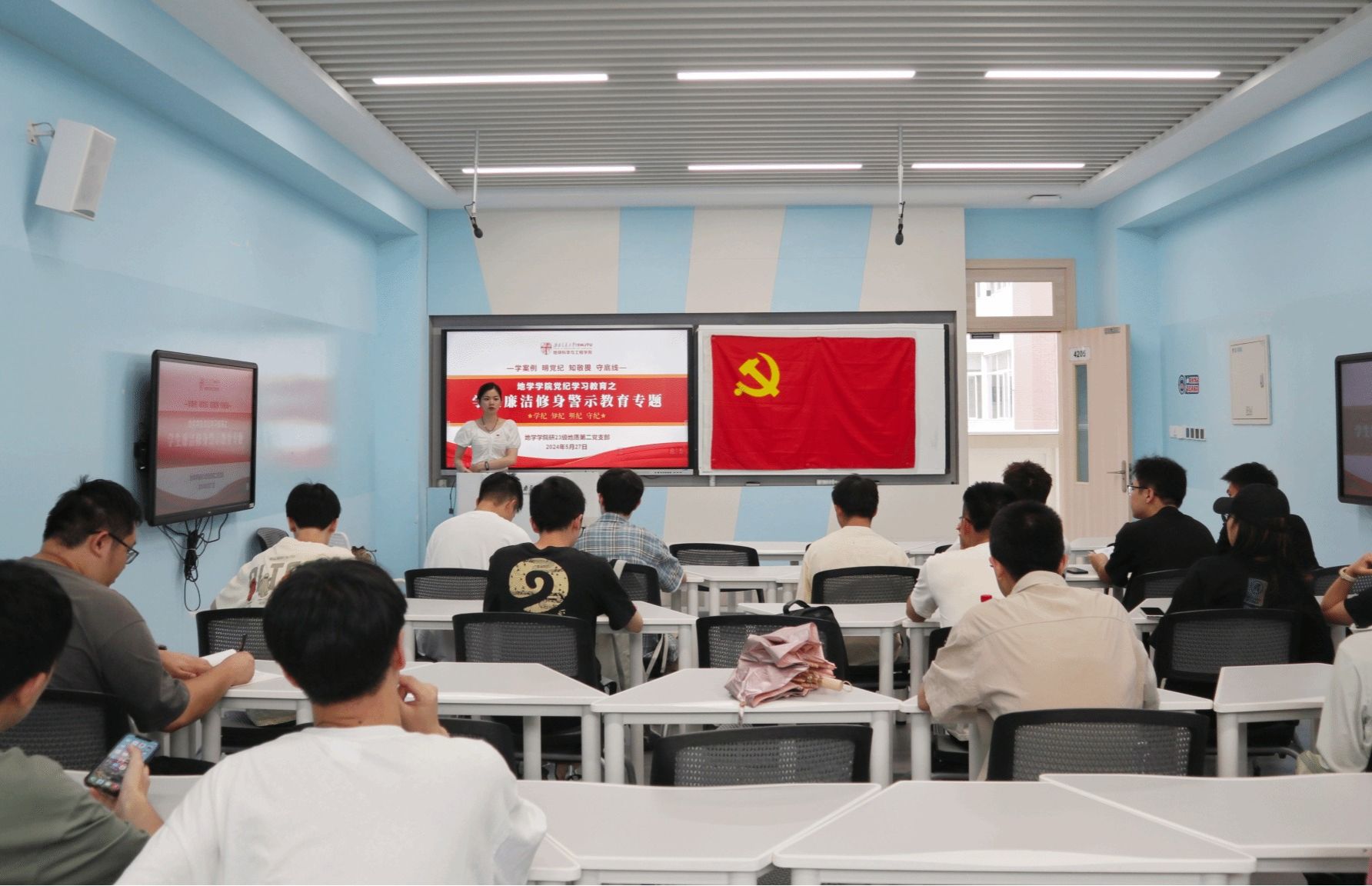 为深入开展党纪学习教育,引导广大师生党员深刻领会党的纪律,强化纪律意识,加强自我约束,提高免疫力,增强政治定力、纪律定力、道德定力、抵腐定力,确保全体党员忠诚干净担当。2024年5月27日,研23级地质第二党支部在九里校区J4205教室举行“学案例、明党纪、知敬畏、守底线”的专题学习员会,由党支部书记黄丽敏担任主讲人,支部全体成员积极参与。