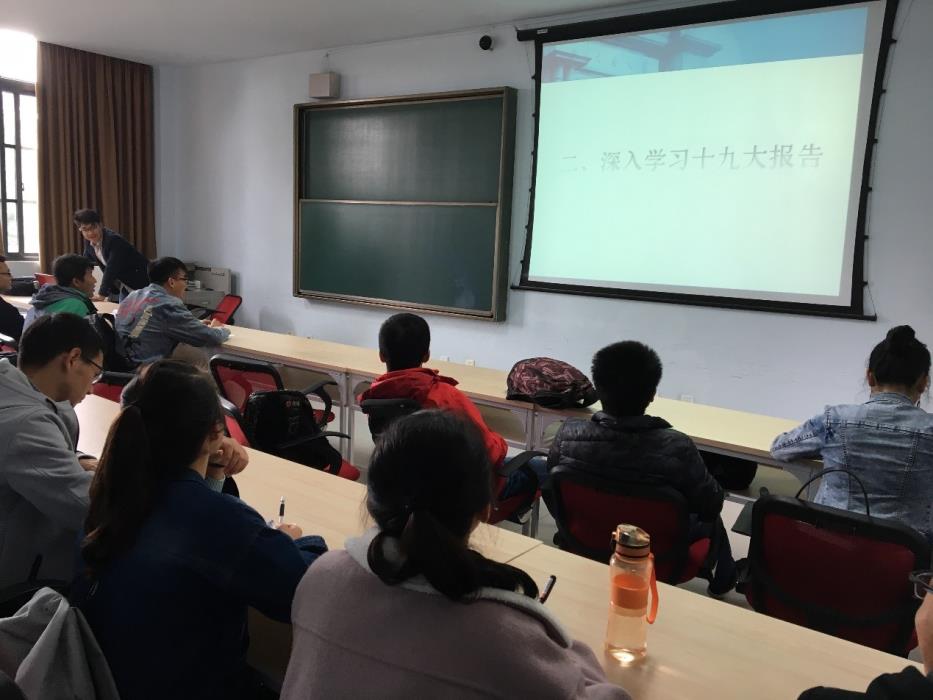 11月2日上午11:30,研17级地质一、二班联合党支部学习会议在X9239教室召开,出席本次会议的是研17级地质一班和地质二班的党支部书记、委员、以及全体共产党员。本次会议以党的十九大精神为主题进行了深入学习。会议由党支部书记何江主持并作出重要讲话。