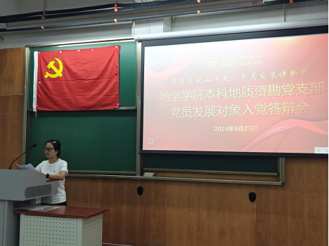2024年9月23日晚上19:30,本科地质资勘党支部在X4155举行了2024-02期发展对象推优入党答辩大会。本支部共有24名党员,其中有17名党员出席了本次大会,有表决权的正式党员实到会人数超过应到会人数的一半,符合组织规定,大会有效。推优入党答辩是党员选拔的重要环节,党支部认真对待,充分考察了候选人的政治素质和能力水平,确保发展对象的先进性和纯洁性。