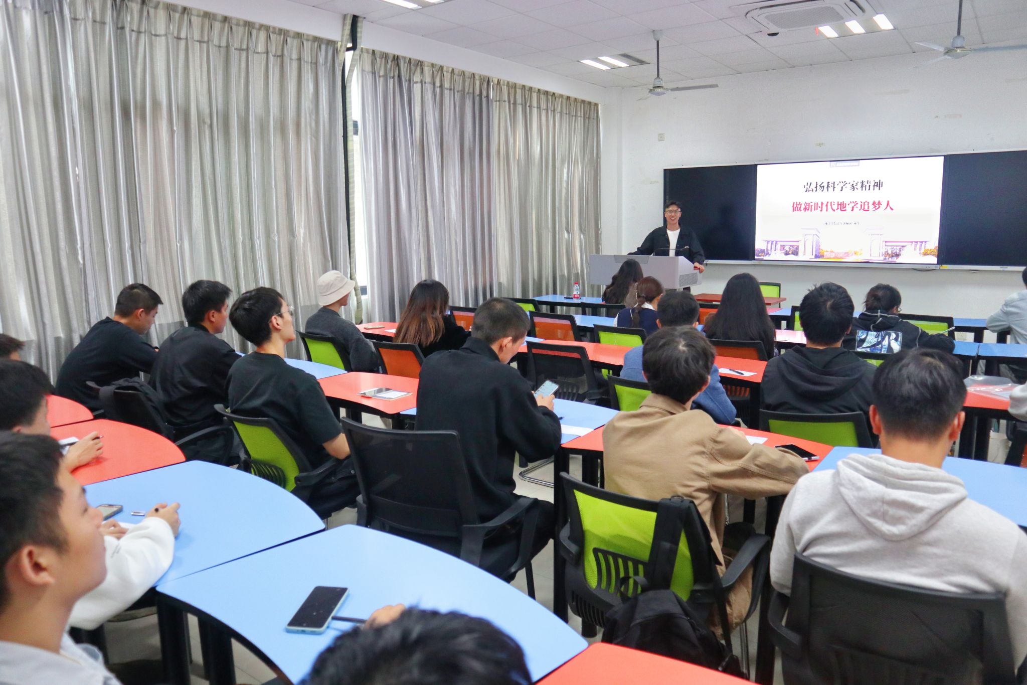 杨洋同志具体讲述了李四光是如何在地质研究中展现探索精神,打破旧有成规,大胆推测,小心求证,为中国的地质事业开创出新纪元。他通过丰富的历史资料和生动的讲解,带领大家重温了李四光先生为地质事业奋斗不息的一生,深刻阐述了李四光精神对于当代青年的启示和激励。