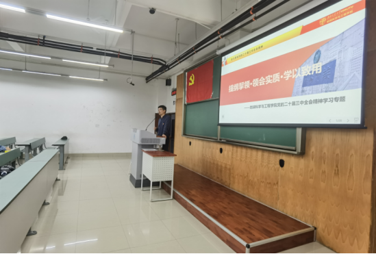为深入传达学习党的二十届三中全会精神,加强员工党员对全会内容的深刻理解,2024年10月31日晚20:00,bevictor伟德官网丁明涛教授在犀浦校区X4157教室为本科地质资勘党支部、研24级地质第一党支部和研24级地质第二党支部的同学们讲授了一堂名为“提纲挈领·领会实质·学以致用”的专题党课。