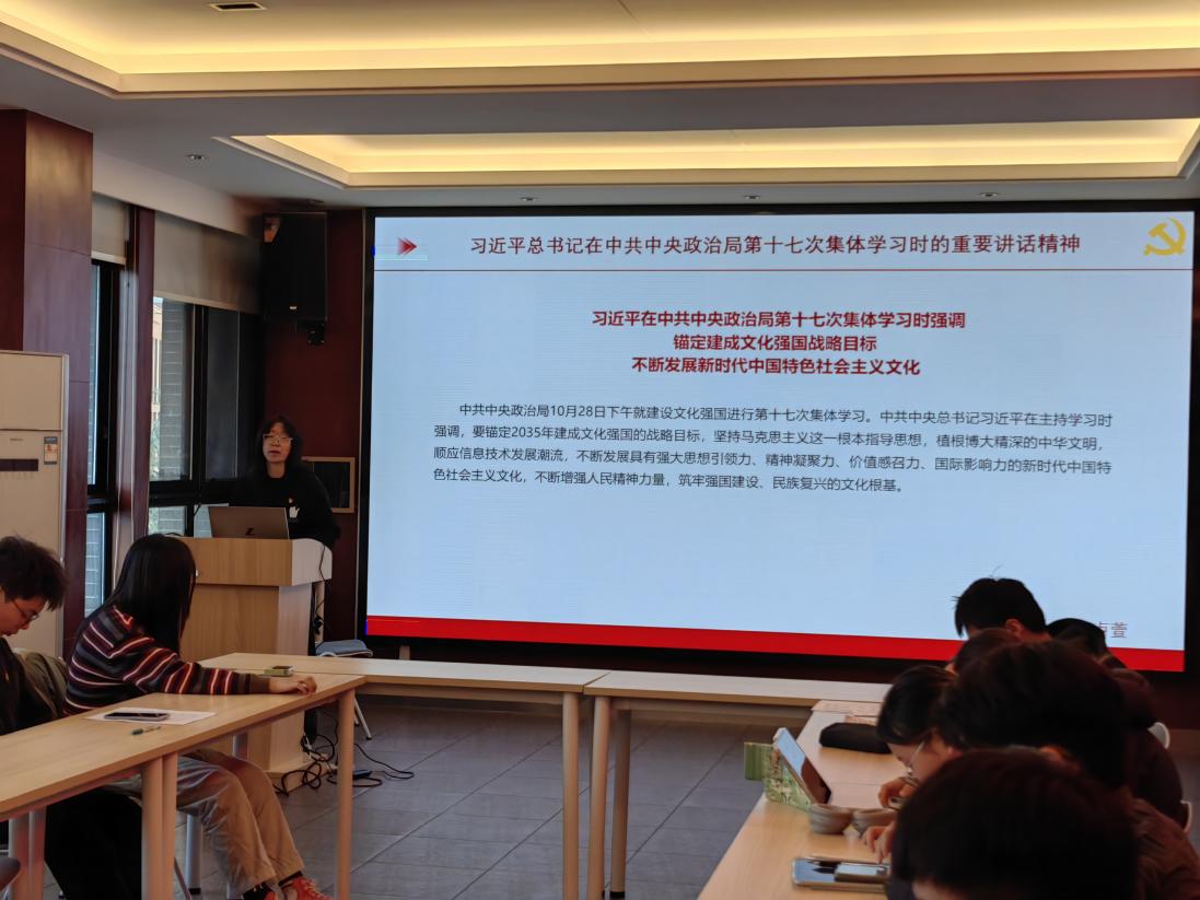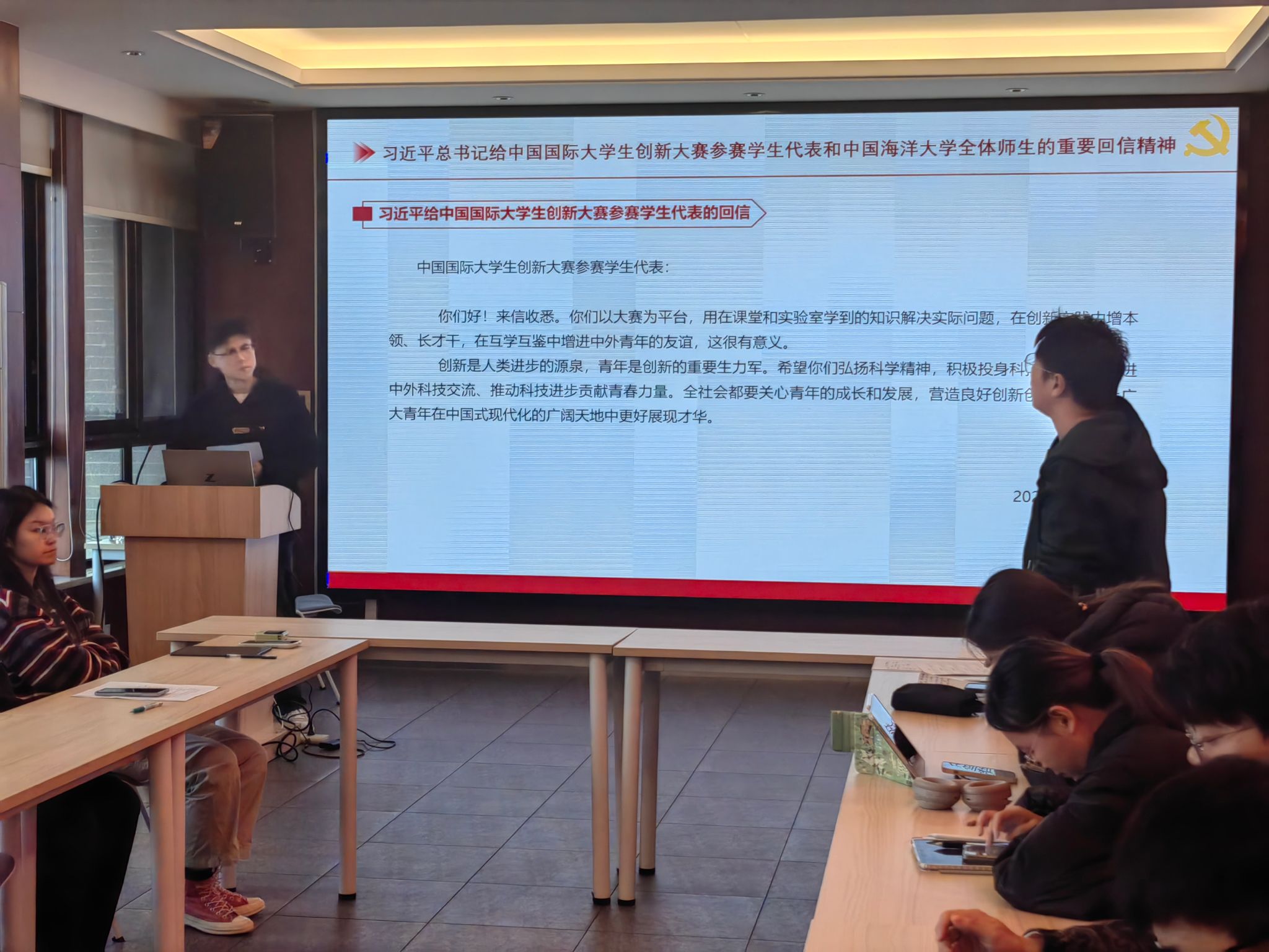 活动开始,冯宇昊同志先后邀请王佳森、易锟、庞一帆、付卢萱四位同志,分别对“习近平总书记在省部级主要领导干部学习贯彻党的二十届三中全会精神专题研讨班上的重要讲话精神”“在福建、安徽考察时的重要讲话精神”“习近平总书记给中国国际老员工创新大赛参赛员工代表和中国海洋大学全体师生的重要回信精神”“习近平总书记在中共中央政治局第十七次集体学习时的重要讲话精神”四则材料进行总结与发表自己的思考。