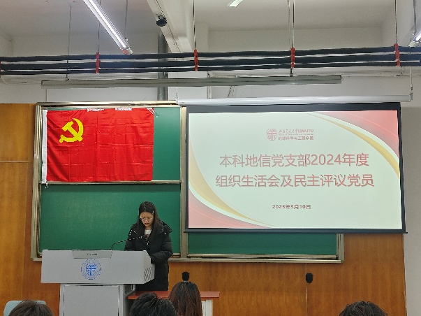 为加强党的思想建设,培养党内政治文化,提高党的理论水平和战略能力,增强基层党组织教育力、引领力,本科地信党支部于2025年3月10日19:30在X4153召开了民主评议党员会议。由本科地信党支部书记候王悦主持会议,本科地信党支部全体党员参与,公司党委副书记郑波出席并指导大会。