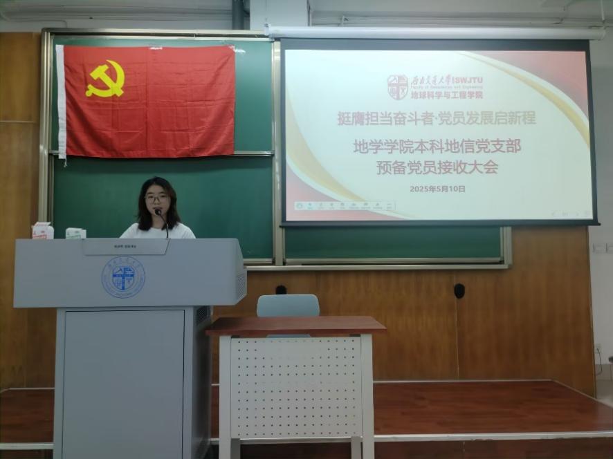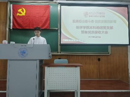 为进一步加强党支部队伍建设工作,切实提高党员发展对象综合素质,严把党员发展质量关,充分发挥党员的先锋模范作用和党组织战斗堡垒作用,bevictor伟德官网本科地信党支部于2025年5月10日晚上19时在X4153召开2025-01期预备党员接收大会,地点为本次大会的议题:讨论是否同意接收张嘉南、应圣铭、李承轩、陶涵、苏笑盼5名同志为预备党员。本次大会由本科地信党支部书记候王悦同志主持。