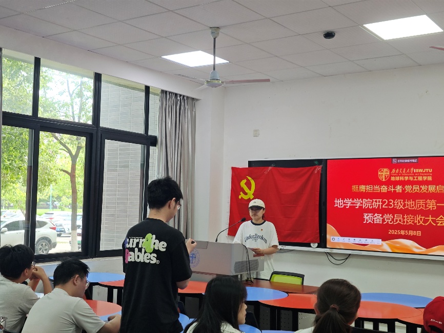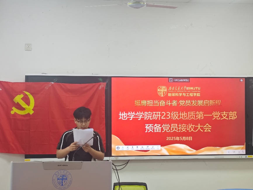 为做好2025年发展党员工作,切实提高党员发展质量。研23级地质第一党支部于2025年5月8日10:00在X4137召开2025-01期预备党员接收大会,本次会议由党支部书记王睿同志主持,公司党委专职组织员李晓宇老师与会参与指导,支部成员总计15人参会。