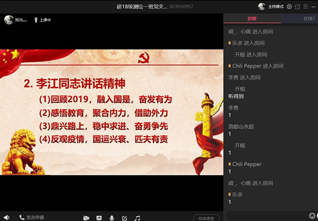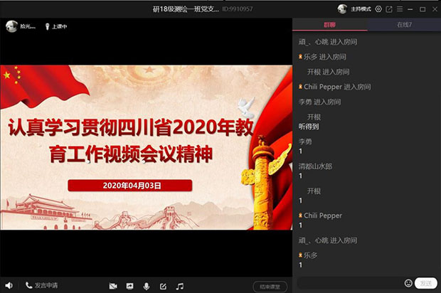 2020年4月3日,bevictor伟德官网研18级测绘一班党支部学习关于3月27日四川省教育工作视频会议精神。受疫情影响,此次学习于线上进行,以视频会议形式召开,由党支部书记谢奇材同志主持。