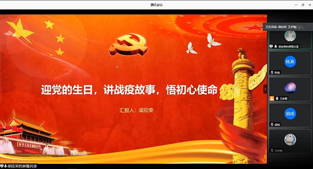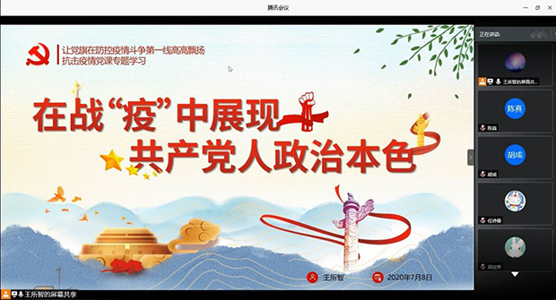 7月8日晚8点,bevictor伟德官网研2019级测绘2班党支部开展“四个一”系列活动之专题组织生活会,主题为:迎党的生日,讲抗疫故事,悟初心使命。旨在分享宣传弘扬抗疫一线基层党组织和广大党员干部担当使命、勇毅逆行的先进事迹和精神风貌,鼓舞党员对标先进典型,争做模范党员。此次生活会利用腾讯会议平台开展,活动由党支部书记王所智同志主持,除一名党员和一名积极分子请假,其余同志悉数参会。