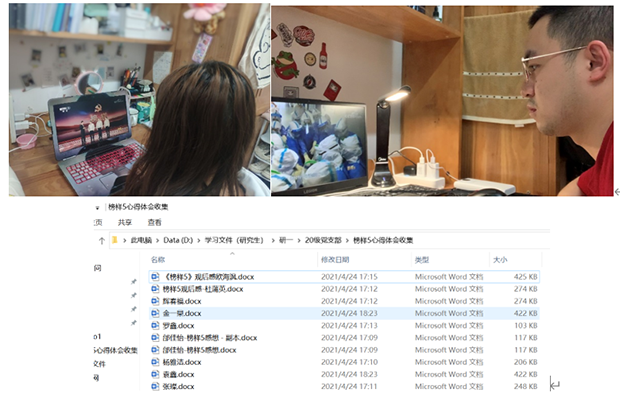 支部同学们自行在网上观看《榜样5》,观后纷纷向组织提交心得体会,在线上观看《榜样5》后,支部党员薪酬澎湃、感慨万千、久久不能平静。支部组织委员杨滨如同志在观看后激动地写道:我庆幸自己生活在一个伟大的国度、一个伟大的时代,我为我的祖国自豪和骄傲!我崇敬每一个为抗疫胜利奉献自己力量的中国人!