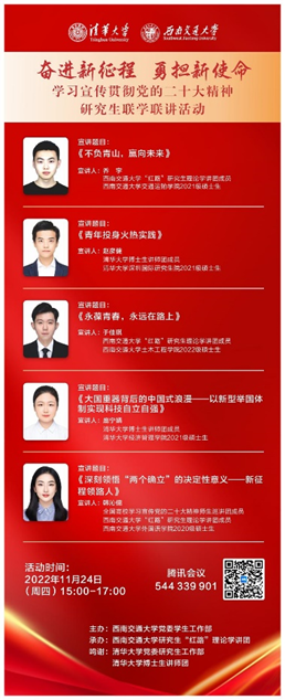 为进一步学习宣传贯彻习近平新时代中国特色社会主义思想和党的二十大精神,公司拟与清华大学联合举办研究生线上联学联讲活动。现将活动相关事项通知如下: